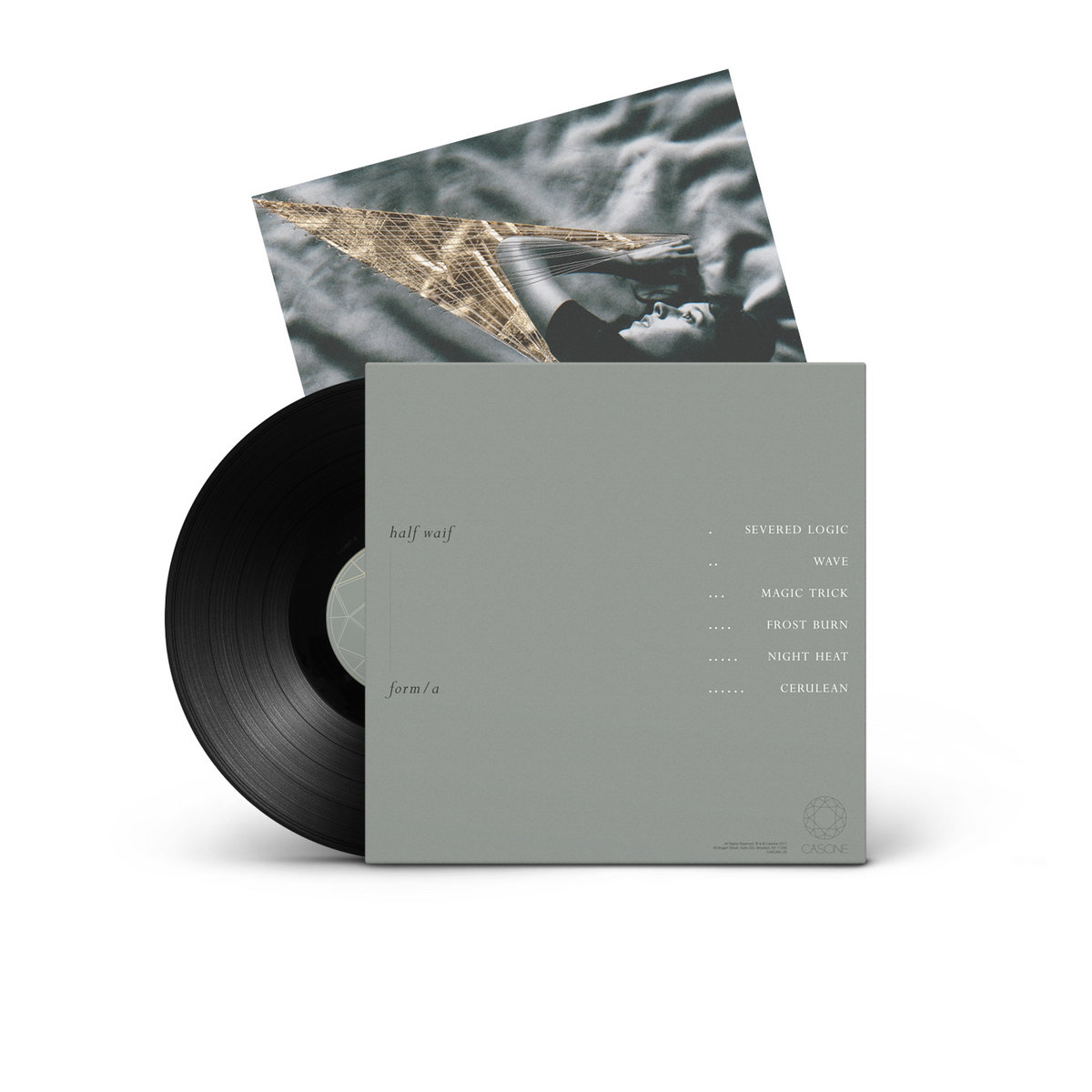 First pressing of Half Waif's form/a EP on 12” black vinyl. Art for the jacket cover and printed inner liner was shot by Adan Carlo and hand-stitched by Chilean artist, María Aparicio Puentes.